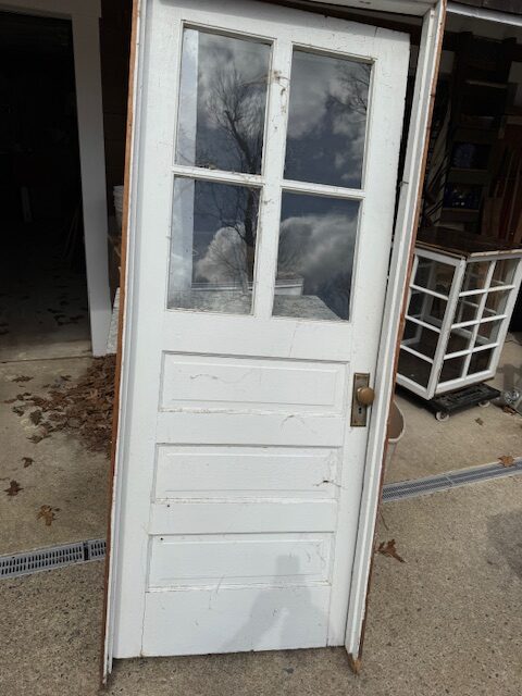 c. 1920-1940 side entry door in very good condition. 32×79 1/4″ , with jamb, and hardware $ 100. SOLD !